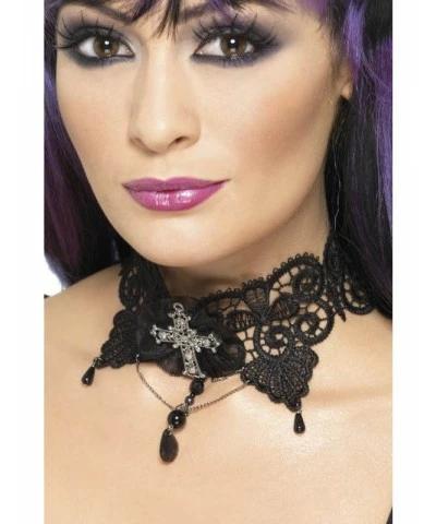 Another gorgeously gothic piece of neck decoration here, this lovely lace choker comes complete with an ornate jewelled cross, so you can fend off vampires whilst still looking the height of elegance and style!